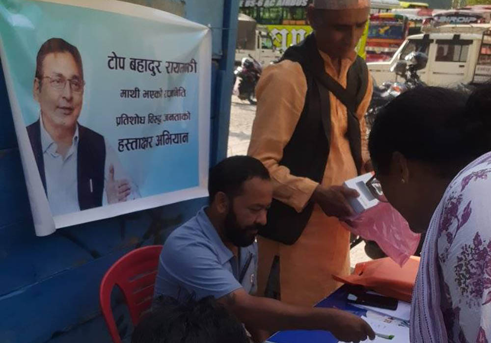 शुक्रबार अर्घाखाँचीको सदरमुकाम सन्धिखर्कबाट हस्ताक्षर अभियान थालिएको हो । स्थानीय दिपेन्द्र पौडेलले हस्ताक्षर अभियानको नेतृत्व गरिरहेका छन् । उनले भनेका छन्- ‘टोप बहादुर रायमाझी माथी भएको राजनिति प्रतिशोधविरुद्ध जनताको हस्ताक्षर अभियान सुरु भएको  छ ।’
