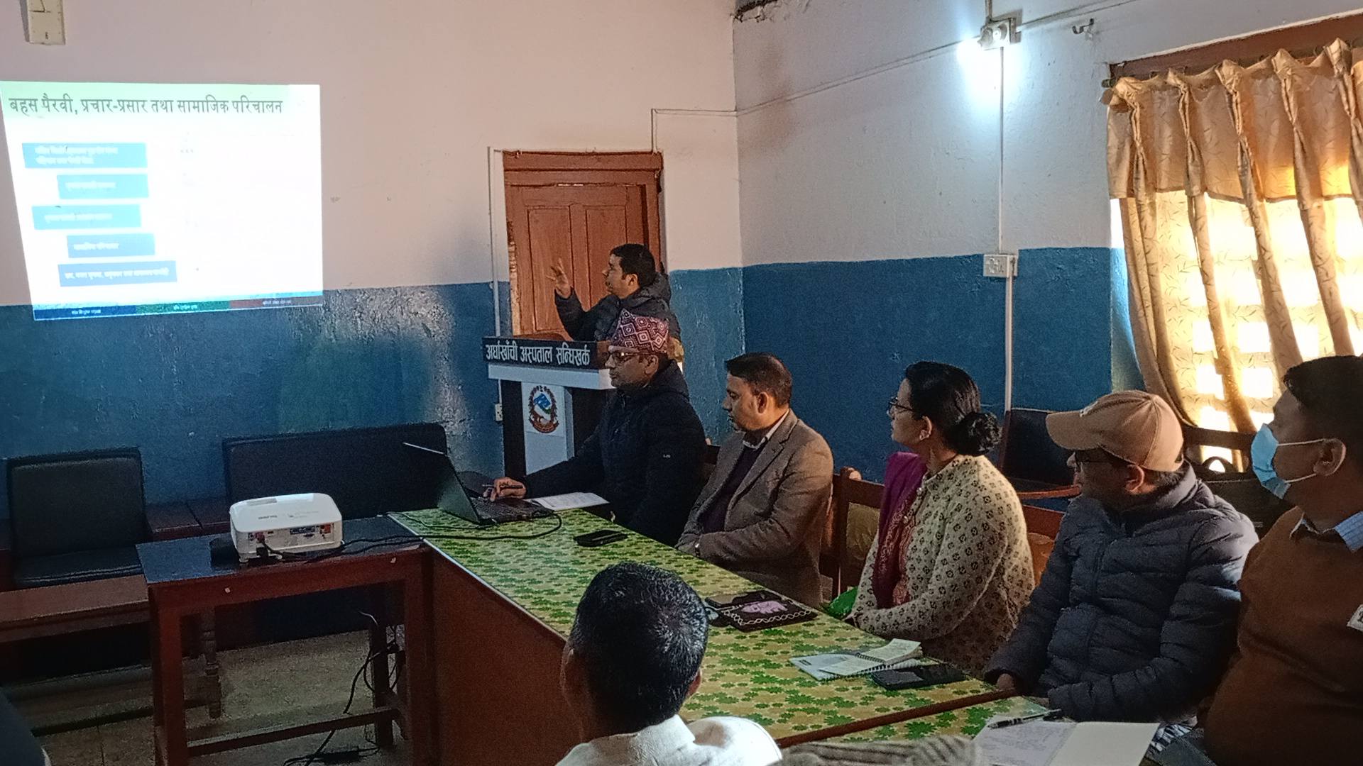 जिल्लामा सञ्चालन हुन लागेको एच.पि.भी. खोप अभियानलाई प्रभावकारी, सफल र जनमैत्री बनाउन सरोकारवाला निकायबीच समन्वय सुदृढ गर्ने उद्देश्यका साथ उक्त कार्यक्रम आयोजना गरिएको हो ।