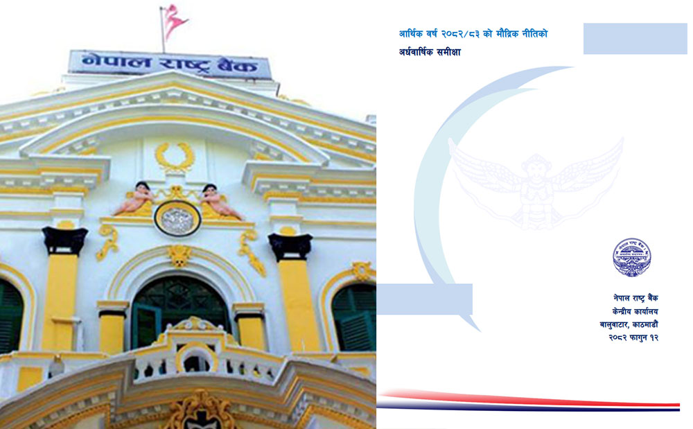 काठमाडौँ । नेपाल राष्ट्र बैंकले आर्थिक वर्ष २०८२–८३ को मौद्रिक नीतिको अर्धवार्षिक समीक्षा सार्वजनिक गर्दै नीतिगत व्यवस्थामा आवश्यक परिमार्जन र निरन्तरताका उपायहरू अघि सारेको छ ।