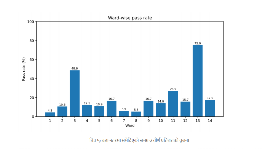 कक्षा–वार विश्लेषणले पनि नतिजा समान नभएको देखाउँछ। कक्षा १३ को समग्र उत्तीर्ण प्रतिशत ७५ प्रतिशत पुगेको छ भने कक्षा १, ७ र ८ जस्ता कक्षाहरू अत्यन्त कमजोर देखिएका छन्। यसको अर्थ समस्या केवल विद्यार्थीको व्यक्तिगत क्षमतामा मात्र सीमित छैन; स्थानीय व्यवस्थापन, विद्यालय–स्तरको संस्कार र शैक्षिक अभ्यास पनि निर्णायक कारक हुन्।