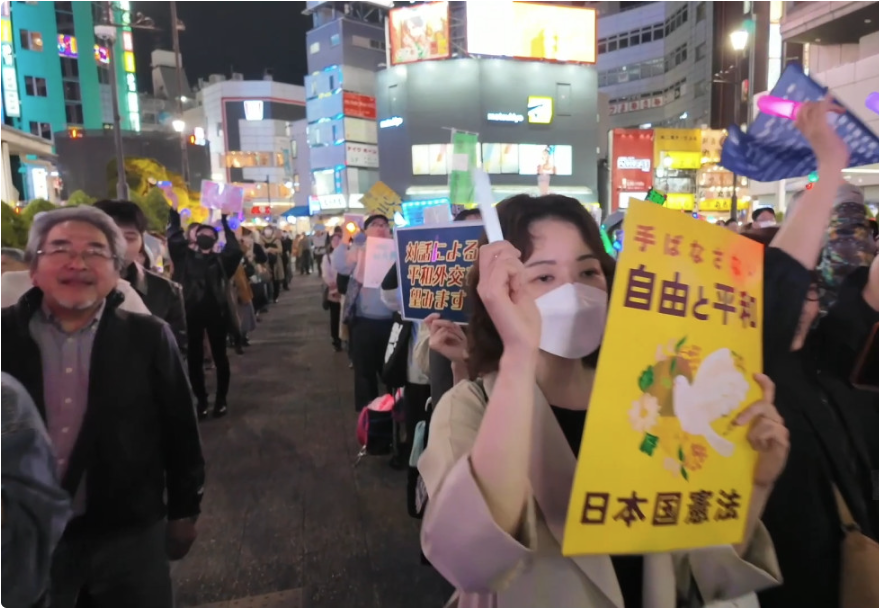 हतियार निर्यातमा लगाइएको प्रतिवन्ध खुकुलो पार्ने र सैन्य विस्तारलाई अगाडि बढाउने सरकारको कदमको जापानी नागरिकहरुले विरोध गरेका छन् । टोकियोको व्यस्त इकेबुकुरो स्टेशनबाहिर जापानका धेरै विपक्षी दलका वरिष्ठ नेताहरू र हजारौं नागरिकहरूले विरोध जनाएका हुन् ।