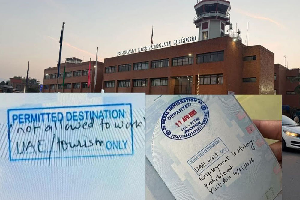विभागले भनेको छ- ‘अरब ईमिरेट्स प्रस्थान गर्न लागेका कुनै नेपाली नागरिकको राहदानीमा प्रस्थान छापसँगै ‘Employment is strictly prohibited. Visit till १० / ६ / २०२६’ लेखेको विषयमा मिति २०८२। १। ३ को निर्णयबाट छानविन समिति गठन गरिएको व्यहोरा अवगत नै छ।’ जारी विज्ञप्तिमा भनिएको छ, ‘नेपाली नागरिकलाई शर्त तोकेर प्रस्थान अनुमति दिने अध्यागमन प्रशासनको कुनै नीति वा निर्णय नभएको हुँदा प्रचलित कानुन र विभागीय निर्णय बाहिर गई गैरकानूनी अभ्यास गर्ने दुई जना अध्यागमन अधिकृतहरुलाई अध्यागमन कार्यालय, त्रिभुवन अन्तराष्ट्रिय विमानस्थलको जिम्मेवारीबाट हटाइ सो सम्बन्धमा आवश्यक छानबिन भइरहेको व्यहोरा अनुरोध गरिन्छ।’