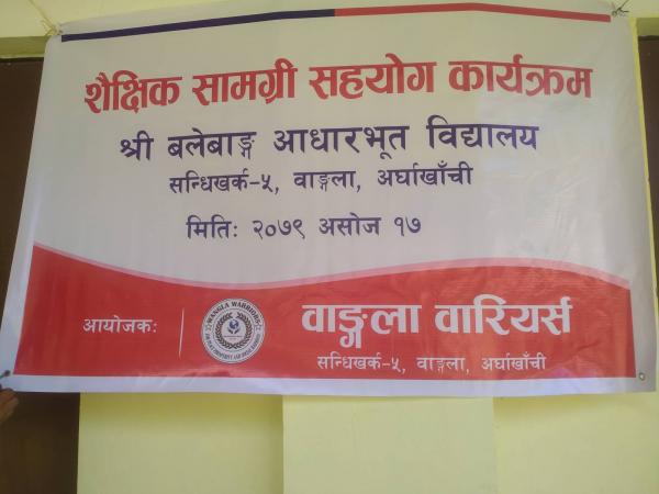 वाङ्गला वारियर्स द्वारा श्री बलेवाङ्ग आधारभुत विधालय सनपा ५ वलेवाङ्गका अति बिपन्न बिधार्थिहरुलाइ शैक्षिक सामाग्री हस्तान्तरण