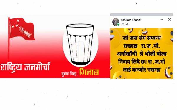 अर्घाखाँचीमा गठबन्धनको दोस्रो ठुलो दल राष्ट्रिय जनमाेर्चाले सहमती नभए भोलि बाेल्ड निर्णय लिने | गठबन्धन संकटमा