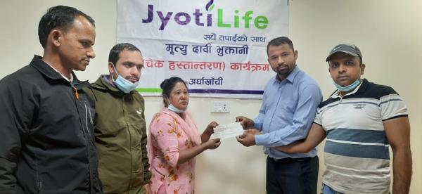 सन्धिखर्कमा ज्योति लाइफ इन्स्योरेन्सद्धारा बीमा दाबी रकम भुक्तानी