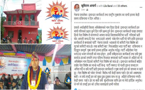 अर्घाखाँचीमा एमालेको निर्विरोध निर्वाचित जिल्ला कमिटी खारेज नगरे सामुहिक राजिनामा दिने तयारी