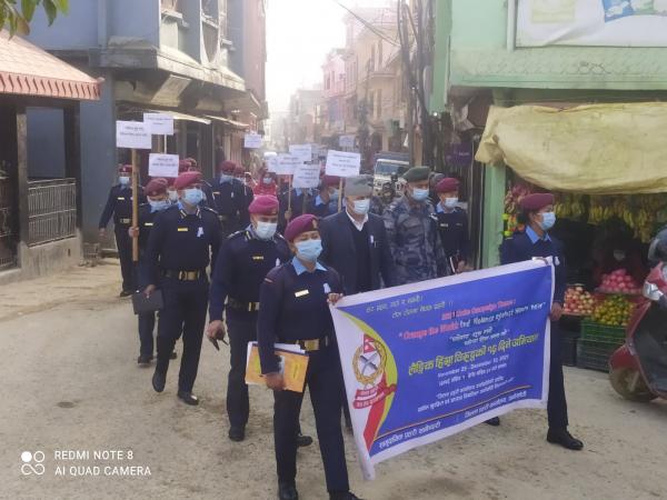 सन्धिखर्कमा प्रहरीको लैङगिक हिंसा विरुद्धको अभियान अन्तरगत प्रभात फेरी -याली कार्यक्रम सम्पन्न