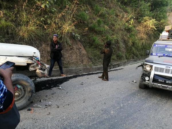 किमडाँडाको भलाडाँडामा सवारी बोकेका दुई जीप एक आपसमा ठोकिदा दुर्घट्ना