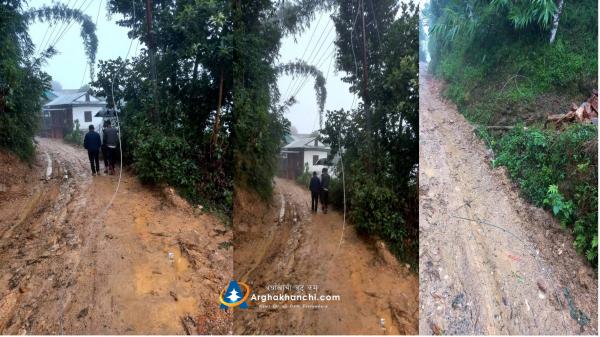 अर्घाखाँचीमा वर्षाका कारण जनजीवन अस्तव्यस्त | जिल्लाभरका सडकहरु अवरुद्ध