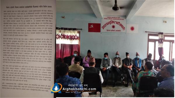 अर्घाखाँचीमा एमालेको १० बुँदे सहमति कार्यान्वयन | “तेस्रो धार”पनि आए जिल्ला कमिटीमा