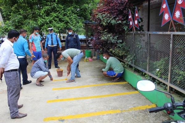 सन्धिखर्कमा ट्राफिक पार्किङ चिन्ह बनाउदै प्रहरी (फोटो सहित)