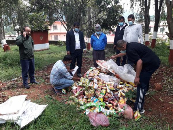 सन्धिखर्कमा म्याद गुज्रेका खाध्य तथा सुर्तीजन्य पदार्थ जलाएर नस्ट गरियो