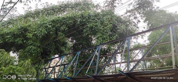 शान्ती बगैंचादेखि कुर संखेटारी जोड्ने पुल माथिको बिजुलीको तारमा बास ढलेर उच्च जोखिम