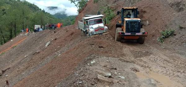 फुदवाङ नजिक पहिरो जाँदा सन्धिखर्क – गोरुसिङ्गे सडक अवरुद्ध
