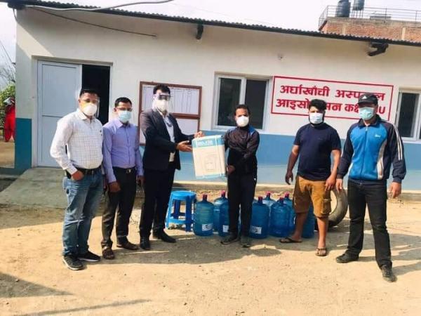 अर्घाखाँची अस्पताललाई एकथान डिस्पेन्सर र ३० जार पिउने पानी हस्तान्तरण