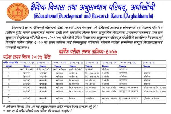 अर्घाखाँचीका सामुदायिक विद्यालयहरूको वार्षिक परीक्षा वैशाख १९ गतेदेखि हुने (समय तालिका सहित)