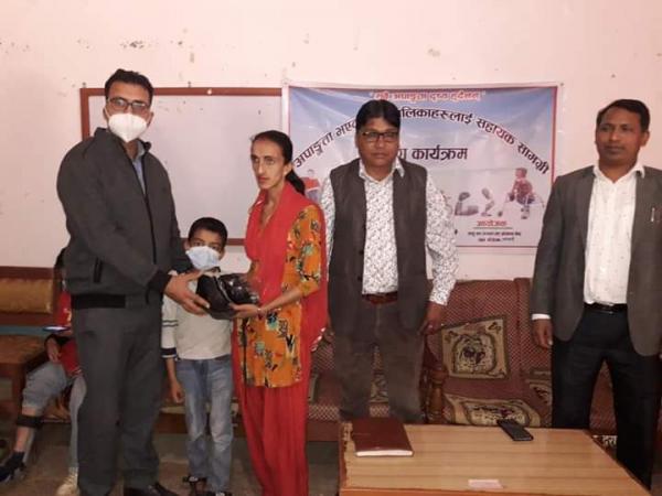 सन्धिखर्कमा अपाङ्ग भएका बालबालिकाहरुलाई सहायता सामग्रीहरु वितरण