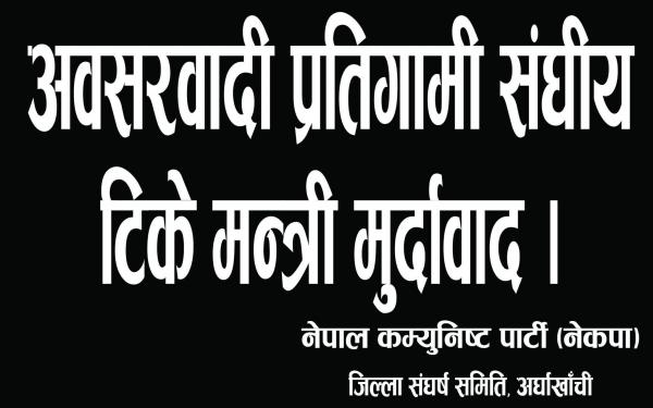 टिके मन्त्री मुर्दावाद | अर्घाखाँचीमा प्रचण्ड-नेपाल पक्षद्धारा कालो ब्यानरसहित विरोध प्रर्दशन