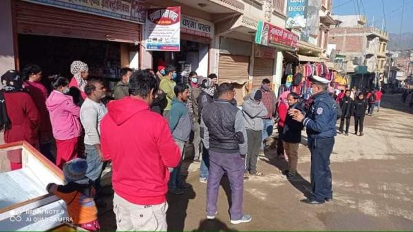 सन्धिखर्क, चुत्राबेसी बजारमा बाटो छेकेर समान राख्ने करिब ५० व्यापारीको सामान हटाईयो