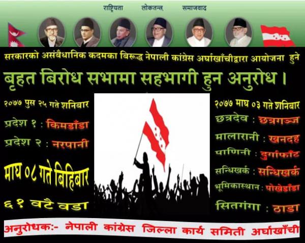 अर्घाखाँचीका ६ पालिकामा कांग्रेसले बिरोध सभा गर्ने (कार्यक्रम तालिका सहित)