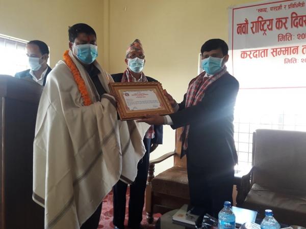 अर्घाखाँचीमा सबै भन्दा बढी कर तिर्ने अम्मर निर्माण सेवाका प्रोपाइटर बसन्त भुसाललाई सम्मान