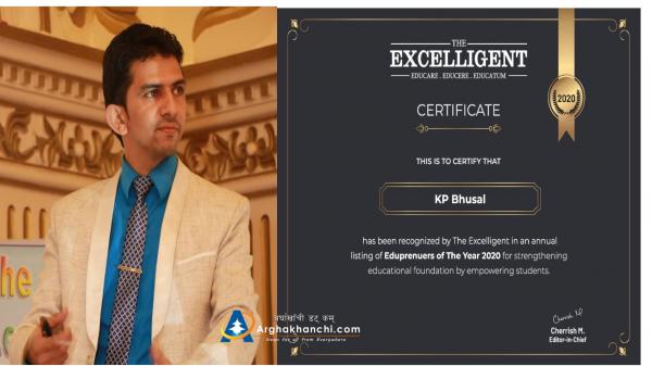 अर्घाखाँचीका युवालाई अन्तराष्ट्रिय शैक्षिक म्यागाजिनबाट एडुप्रनेर बर्ष २०२० को मान्यता प्रदान