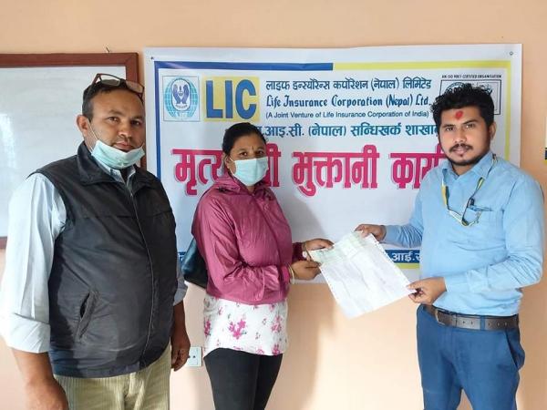 सन्धिखर्कमा कोरोनाबाट ज्यान गुमाएका परिवारलाई ईन्सुरेन्स भुक्तानी प्रदान
