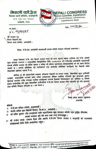 नेविसंघ अर्घाखाँची काठमाडौं सम्पर्क समिती बिघटन