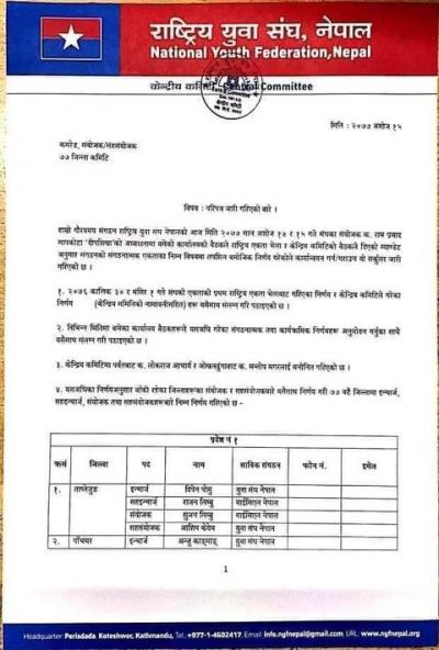 नेकपाको भातृ संस्था युबा संघ अर्घाखाँचीमा नयाँ जिम्मेवारी