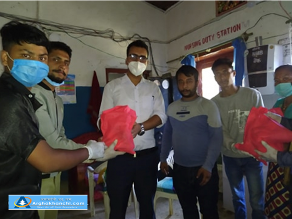 सन्धिखर्कमा नेबिसंघ प्राबिधिक शिक्षा परिषद प्रदेश ५ द्वारा बिरामीहरुलाई फलफूल, माक्स बितरण