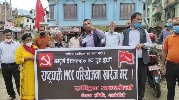 अर्घाखाँचीमा राष्ट्रिय जनमोर्चाद्धारा अमेरिकी एमसीसीको विरोधमा प्रदर्शन (भिडियो, फोटो सहित)
