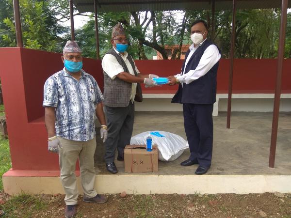 अर्घाखाँचीमा उद्योग बाणिज्य संघद्धारा माक्स र सेनिटाईजर बितरण