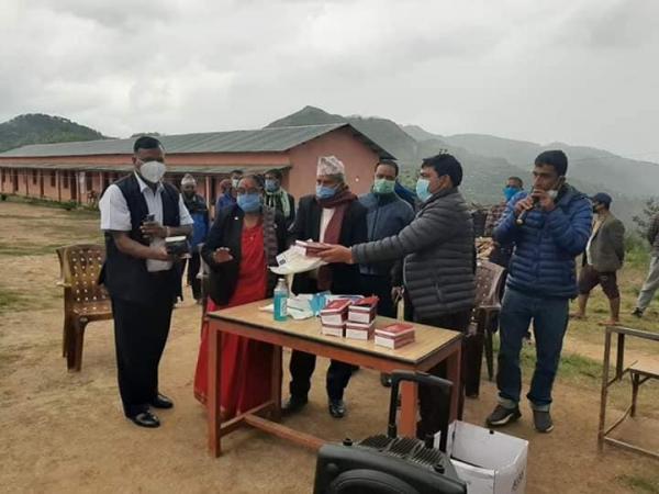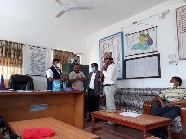 मालारानी गाउँपालिका र जिल्ला अस्पताल अर्घाखाँचीलाई बुवाको स्मृतिमा स्वास्थ सामग्री हस्तान्तरण