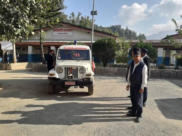 अर्घाखाँचीको पहिलो एम्बुलेन्सलाई वाङला स्वास्थ्य चौकीले जोखिम मोलेर बिरामी बोक्न प्रयोग गर्दै