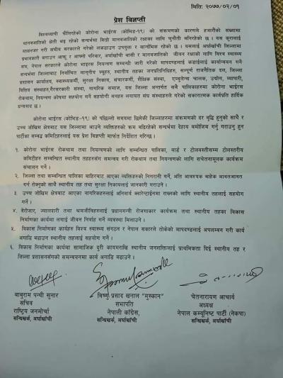 अर्घाखाँचीमा राष्ट्रिय जनमोर्चाद्वारा केही जनप्रतिनिधि र स्थानिय सरकारले कोरोनासँग खेलवाड गरि गम्भिर गल्ती गरेको आरोप