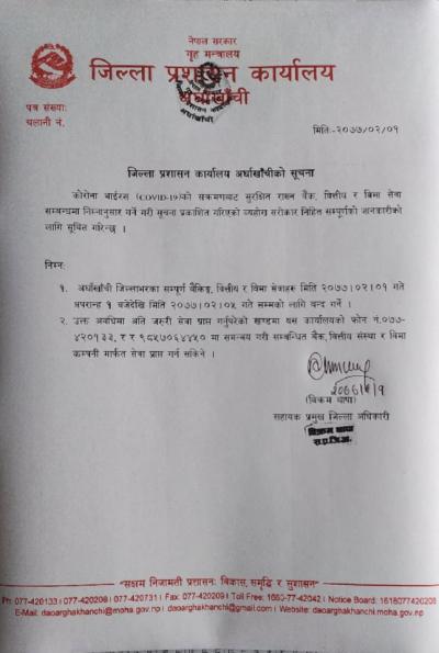 अर्घाखाँचीभरका सम्पुर्ण बैंकिङ्ग, बित्तिय तथा बिमा सेबाहरु बन्द