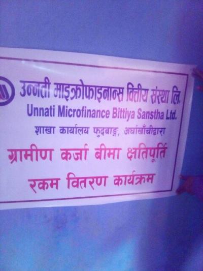 पोखराथोकमा उन्नती माईक्रो फाइनान्स बित्तीय संस्था लिमिटेड फुदबाङद्धारा बिमा क्षतिपुर्ती रकम बितरण