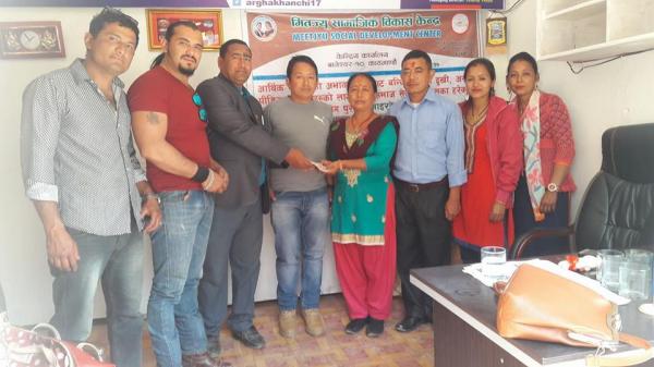 पोखराथोककी क्यान्सर पिडितलाई मितज्यु सामाजीक विकास केन्द्रद्वारा आर्थिक सहयोग रकम हस्तान्तरण