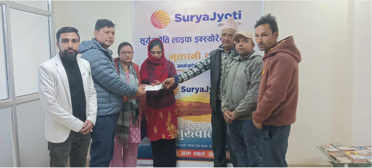 सुर्यज्योति लाइफ इन्स्योरेन्स अर्घाखाँची शाखाले दियो बीमितको परिवारलाई मृत्यु दाबी भुक्तानी (तस्बिर सहित)