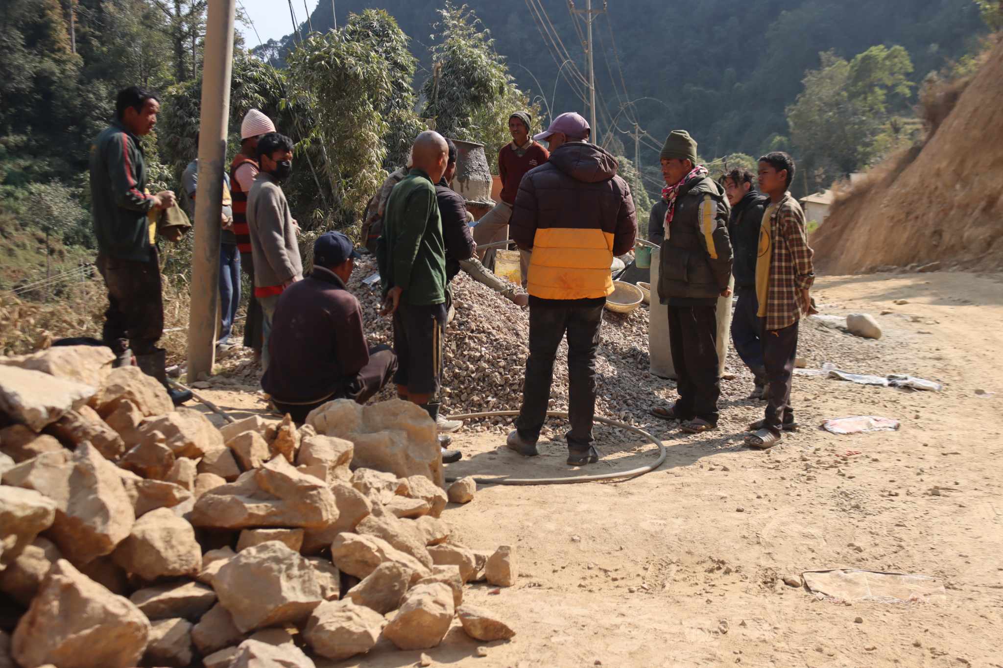 सालझण्डी-सन्धिखर्क-ढोरपाटन सडक ; ठेकेदार कम्पनी पुष्पा जेभि र आयोजना कार्यालयको मिलेमतोमा गुणस्तरहिन सामग्री प्रयोग