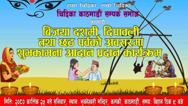 कात्तिक २५ गते चिदिका – काठमाडौं सम्पर्क समाजले बिजया दशमी , दिपावली तथा छठ को शुभकामना आदानप्रदान कार्यक्रम आयोजना गर्दै