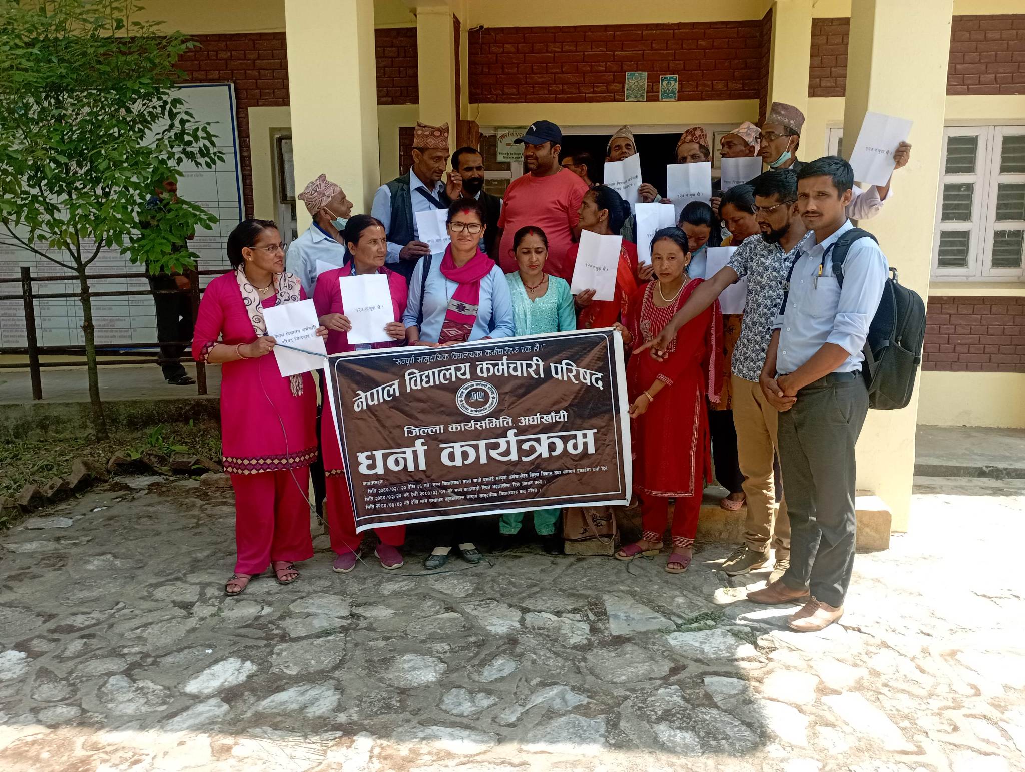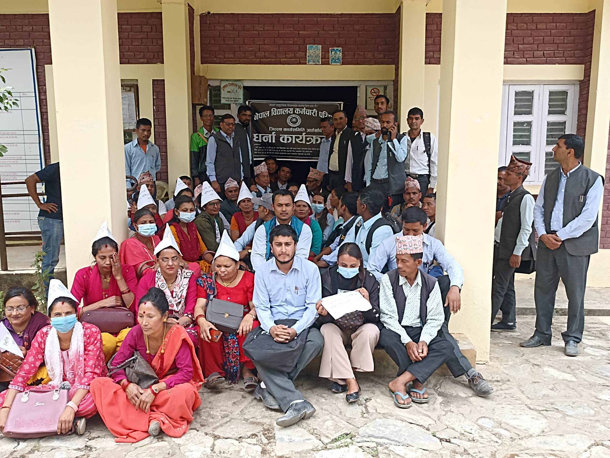नेपाल बिद्यालय कर्मचारी परिषदद्वारा आफ्नो मागमा सरकार गम्भिर नभएको भन्दै धर्ना अभियान शुरु (तस्बिर सहित )
