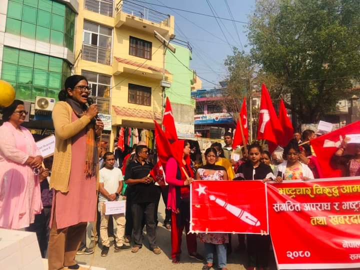 भ्रष्टाचारविरुद्ध नेकपा माओवादी केन्द्रका भातृ संगठनहरूद्वारा सन्धिखर्कमा काेणसभा