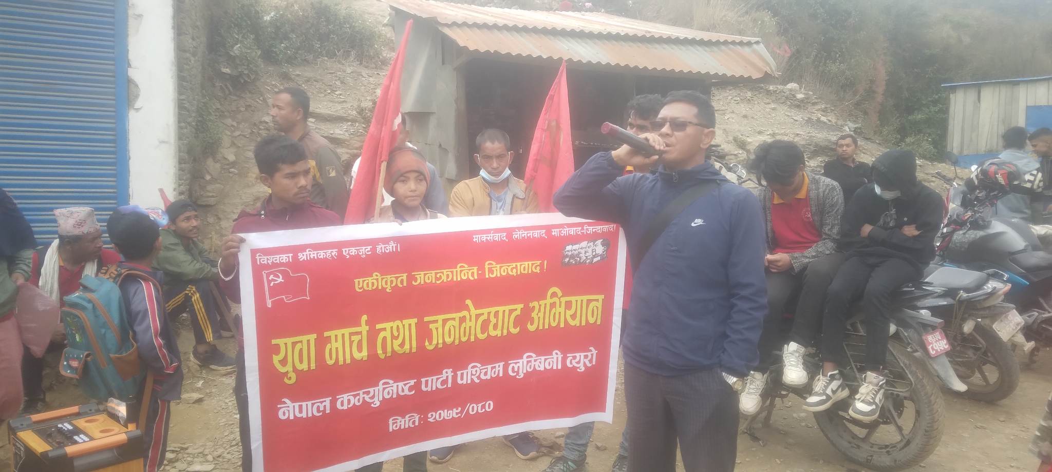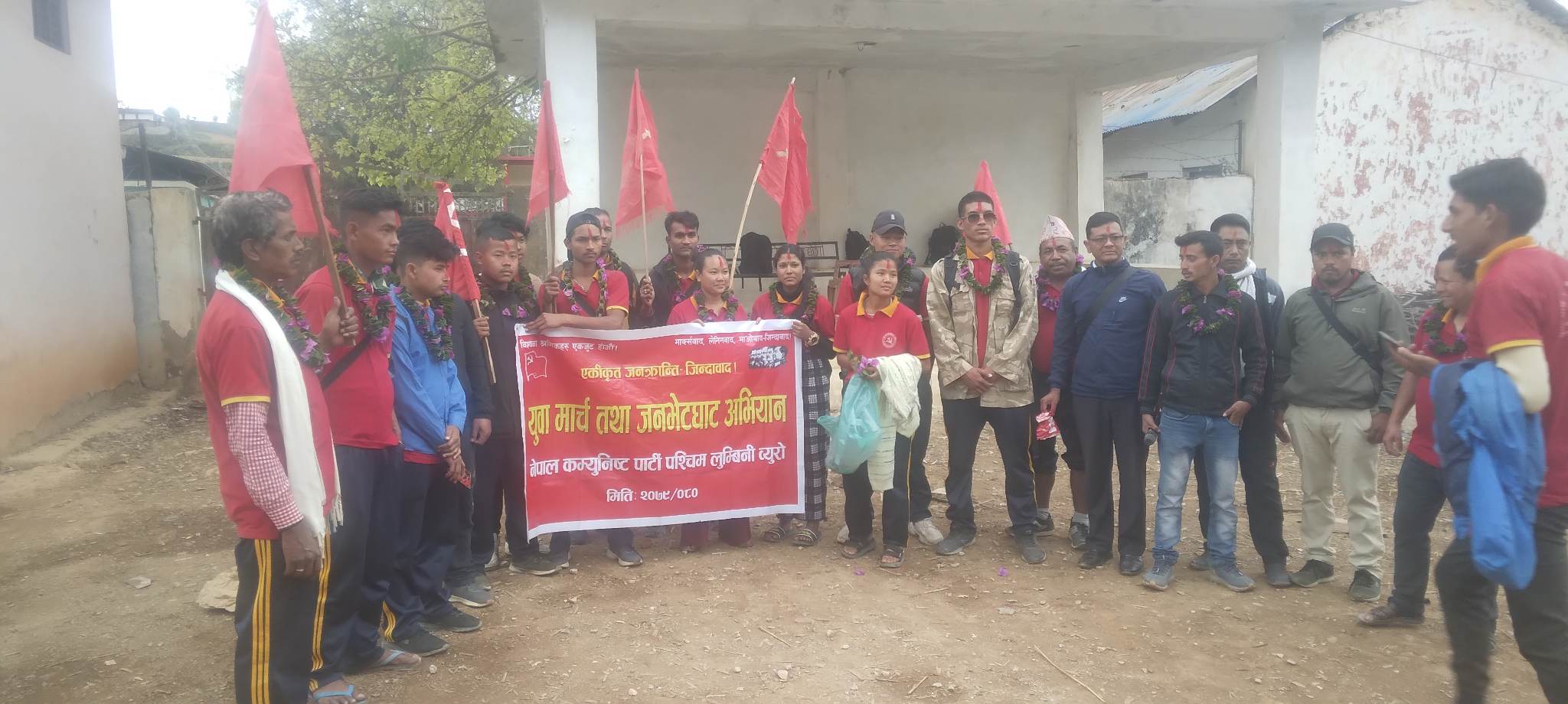 नेपाल कम्युनिस्ट पार्टी (बिप्लब)काे भातृ सगठन युवा सगठन नेपाल लुम्बिनी प्रदेशकाे मार्च पास तथा जनभेटघाट कार्यक्रम सम्पन्न (तस्बिर सहित)