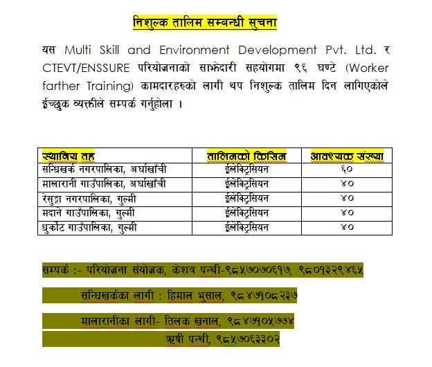 स्वरोजगार बनाउन तालिम : अर्घाखाँचीका स्थानियतहमा निशुल्क ईलेक्ट्रिसियन तालिम हुँदै