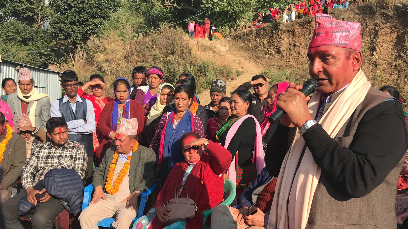 अर्घाखाँचीबाट निर्वाचित सांसदहरु गाँउ गाँउमा टिका र माला ग्रहण गर्नमा ब्यस्त ।