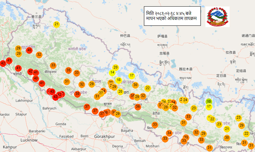 मध्य तथा पश्चिमी तराईमा अझै तीनदिन अत्यधिक गर्मी हुने, तातो लहर चल्ने