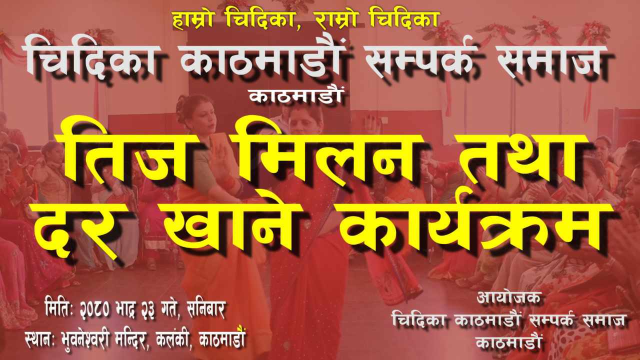 भदौ २३ गते चिदिका – काठमाडौं सम्पर्क समाजले तिज मिलन कार्यक्रम आयोजना गर्दै