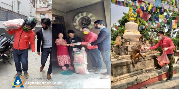 काठमाडौंमा अलपत्र परेका र बिपन्न बर्गका विद्यार्थीलाई सहयोग गर्दै अर्घाखाँचीका सचिन पाण्डे