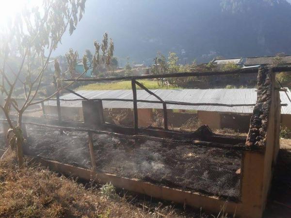 अज्ञात समुहको आगजनीबाट सात सय कुखुरा पूर्णरुपमा जलेर नष्ट